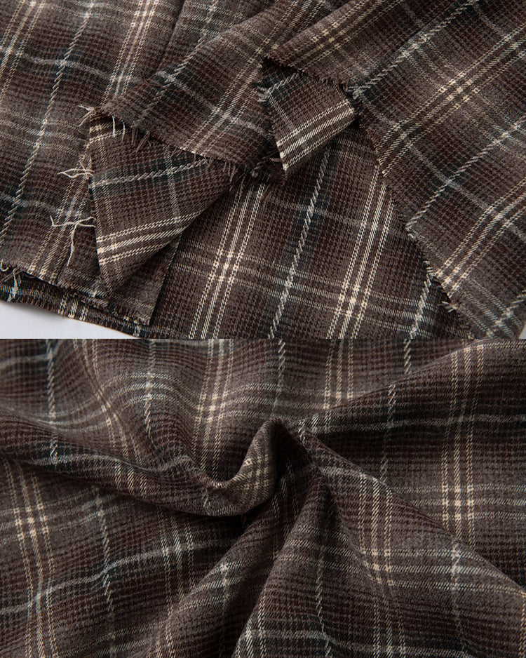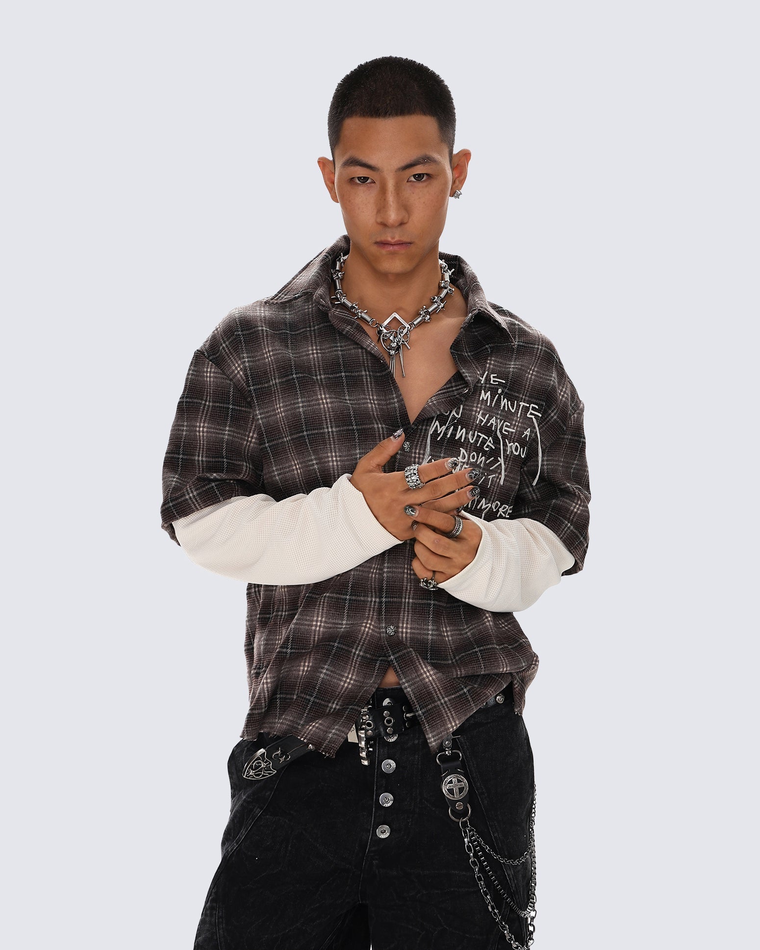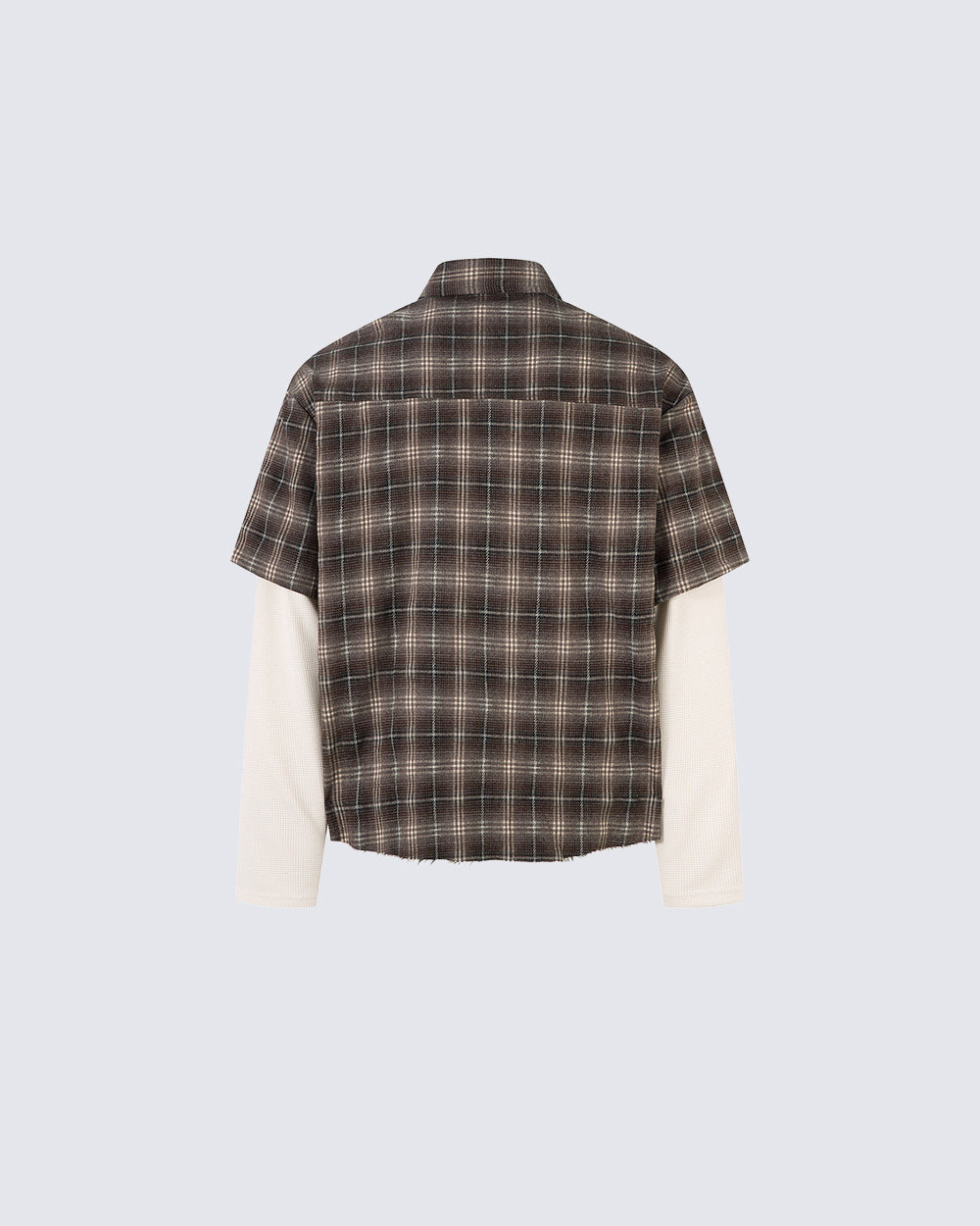 Ombre checkered pattern, faux two-piece design, relaxed fit, button-down closure, modern vintage style
