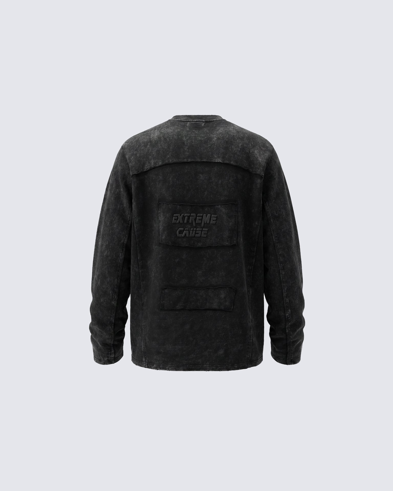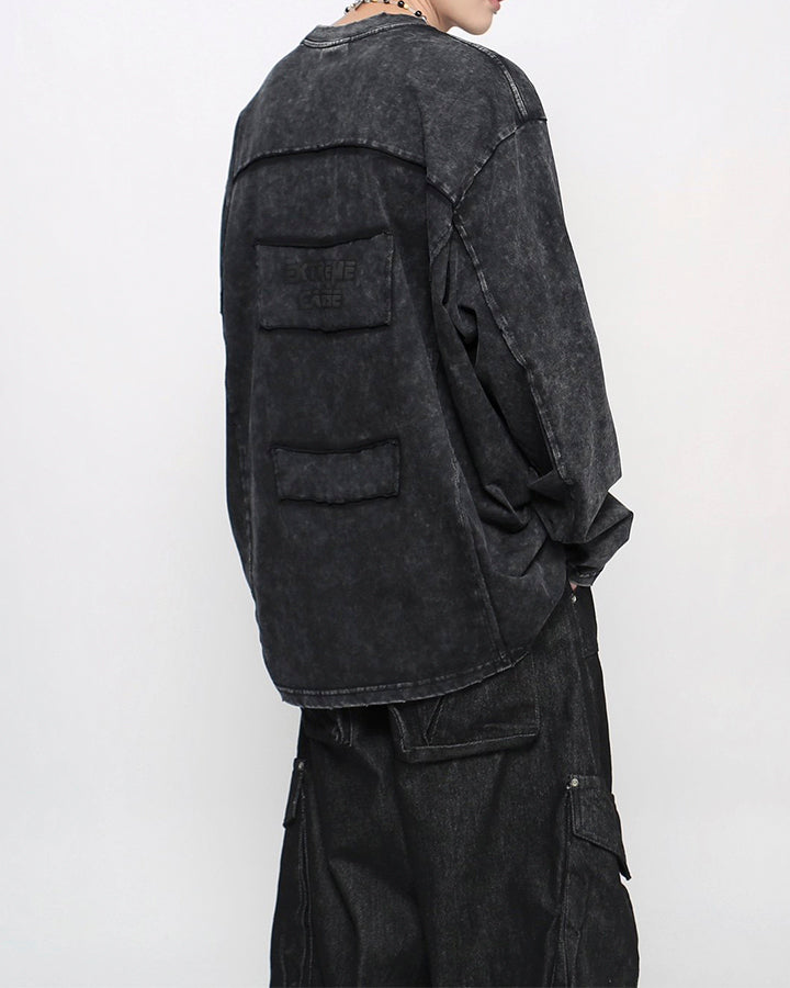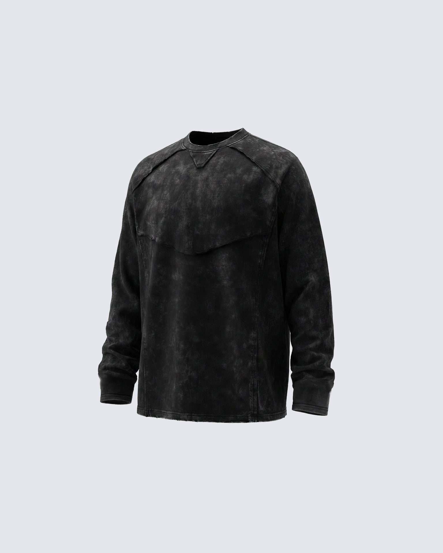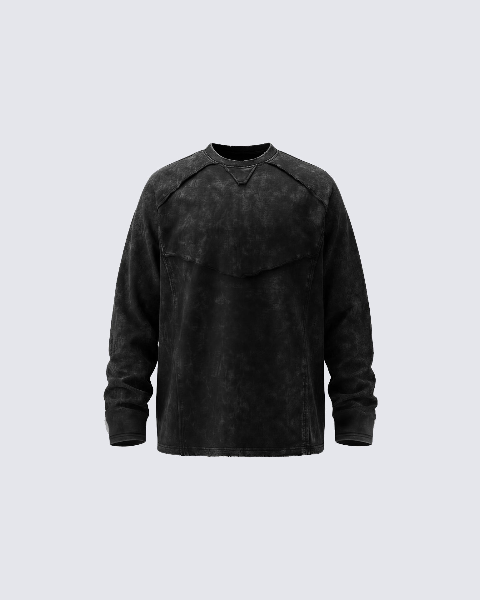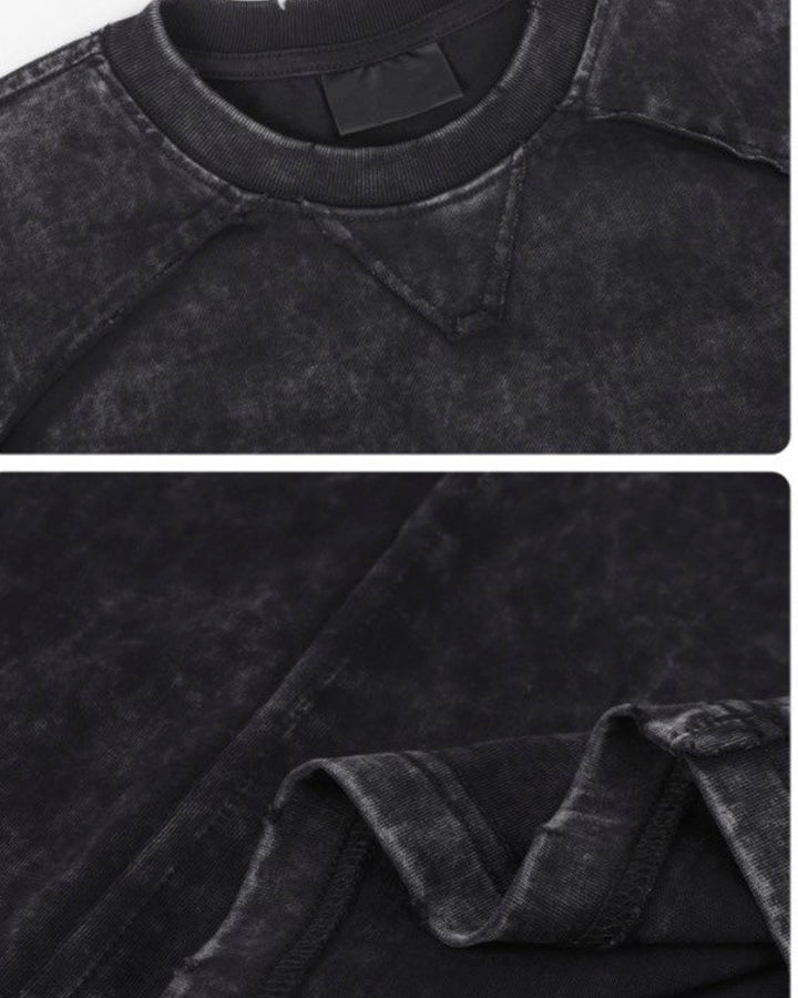 Vintage washed finish, crewneck design, relaxed fit, long sleeves, minimalist street aesthetic