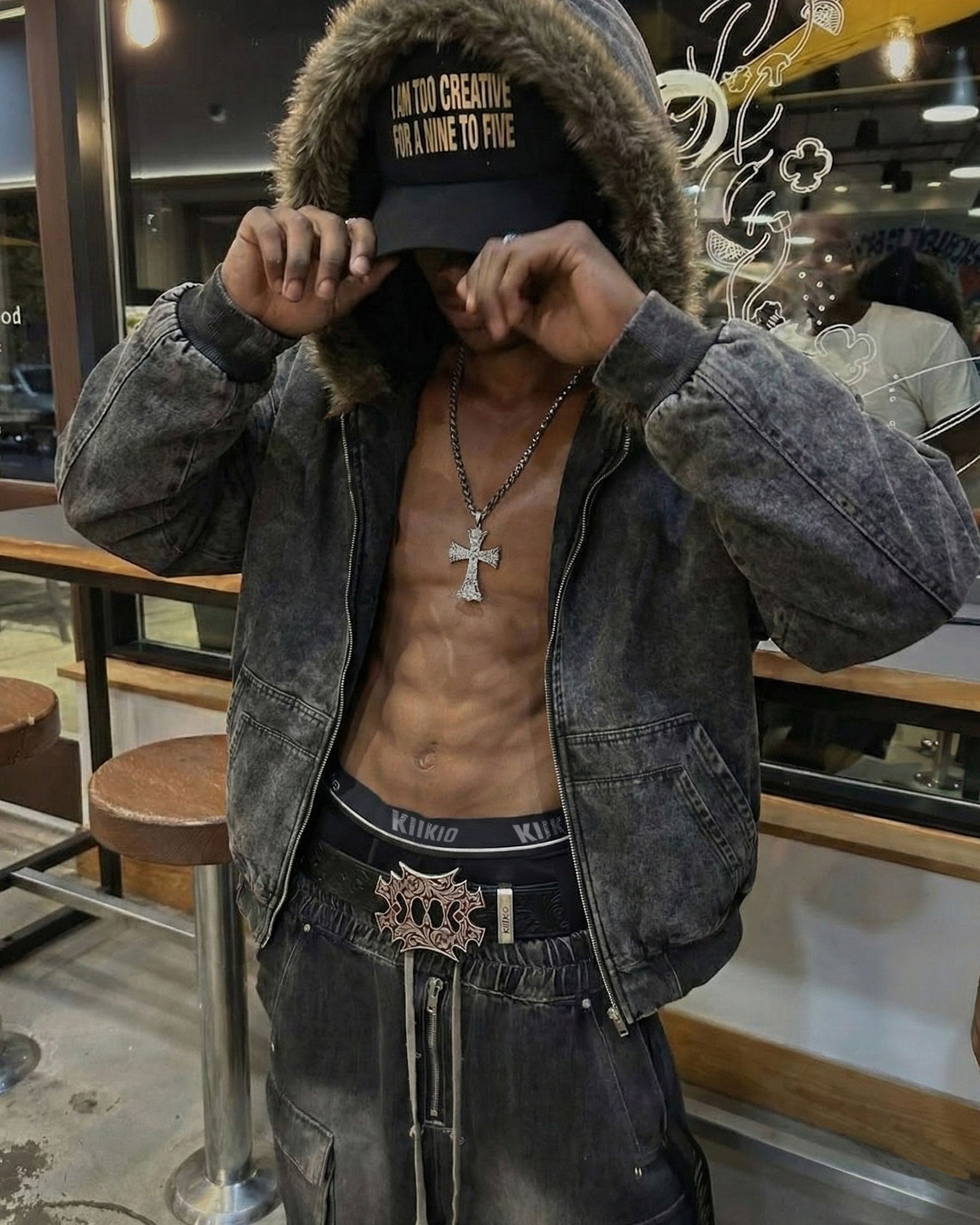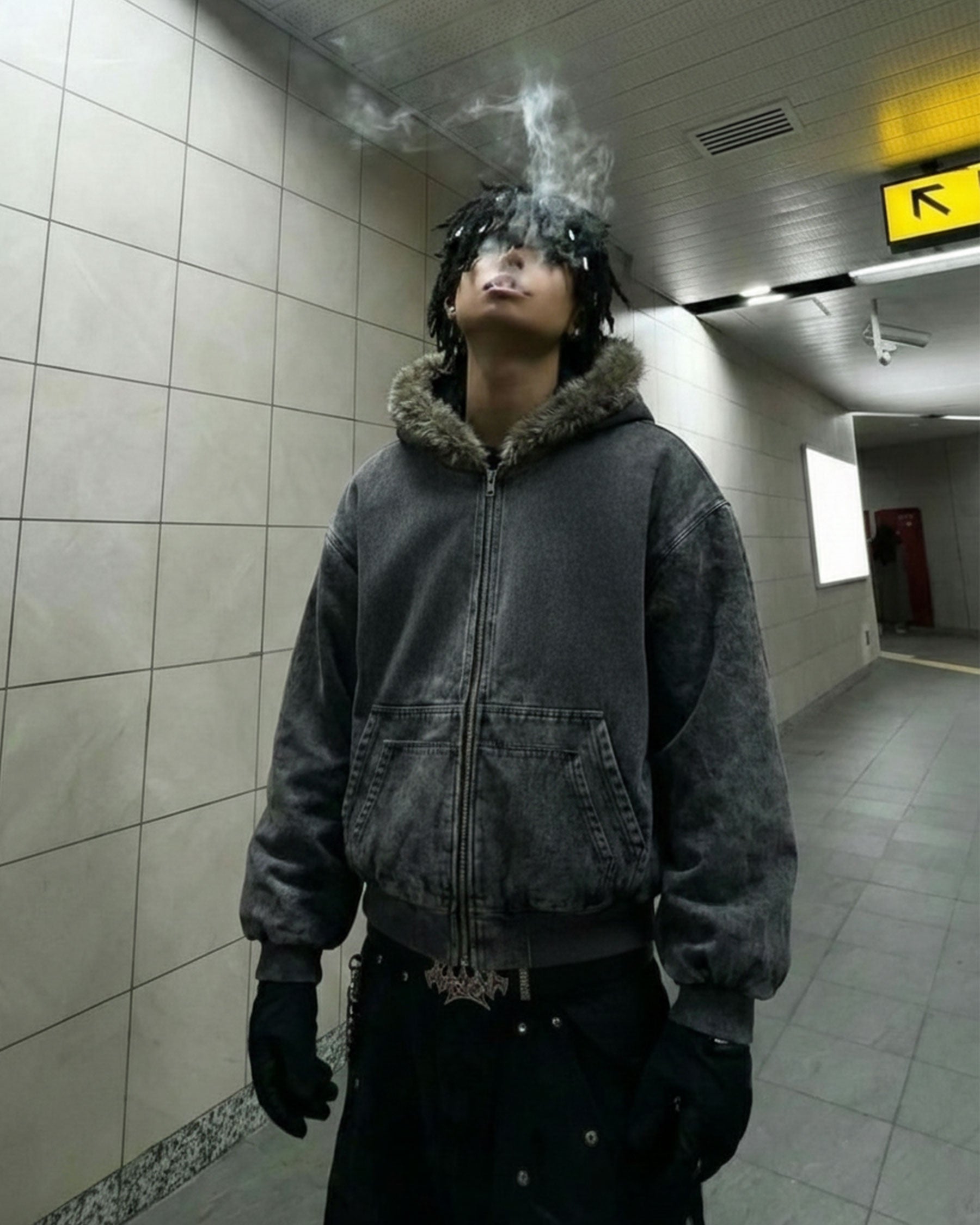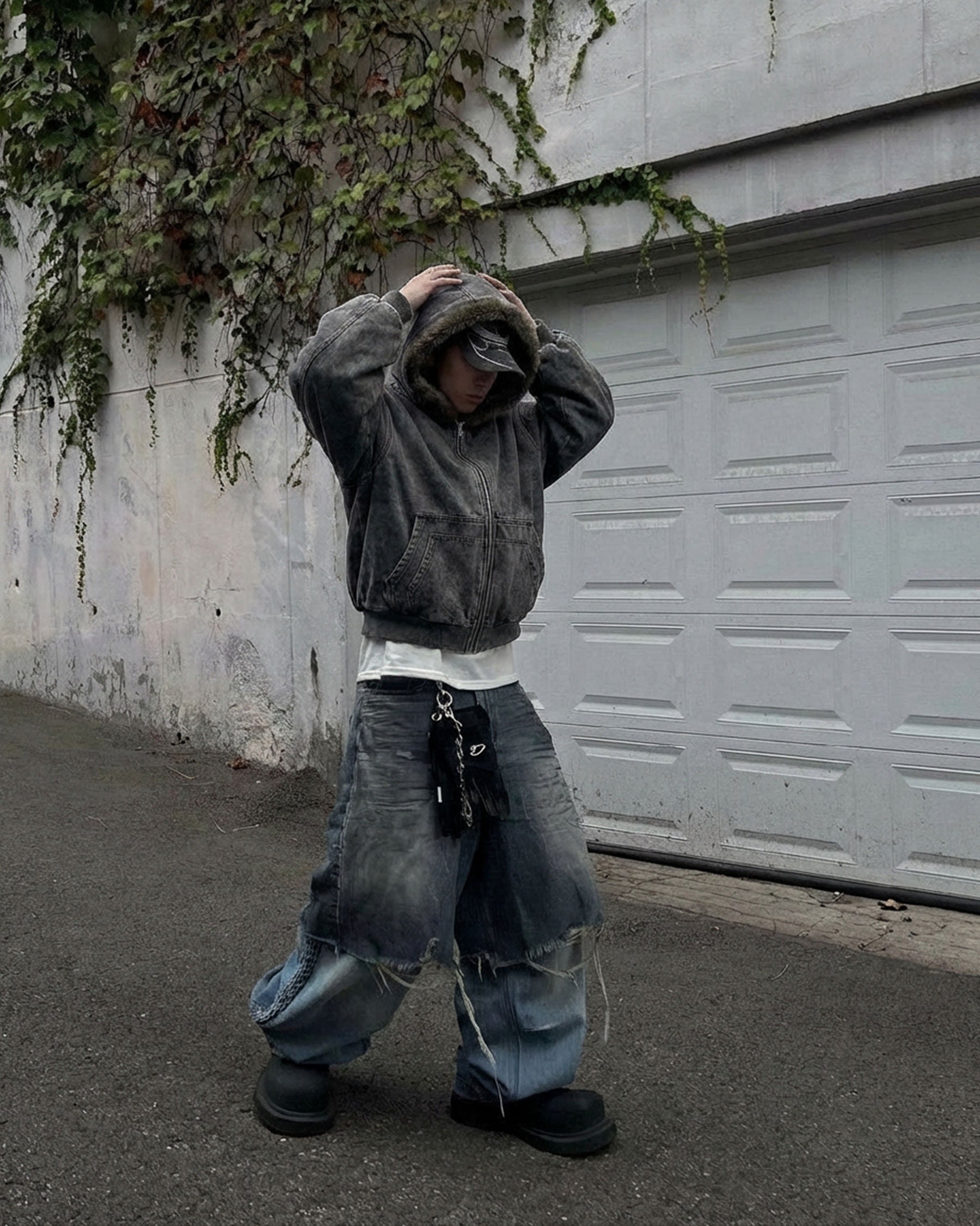Boxy fit — combining a cropped body with an elongated silhouette for a balanced streetwear aesthetic.