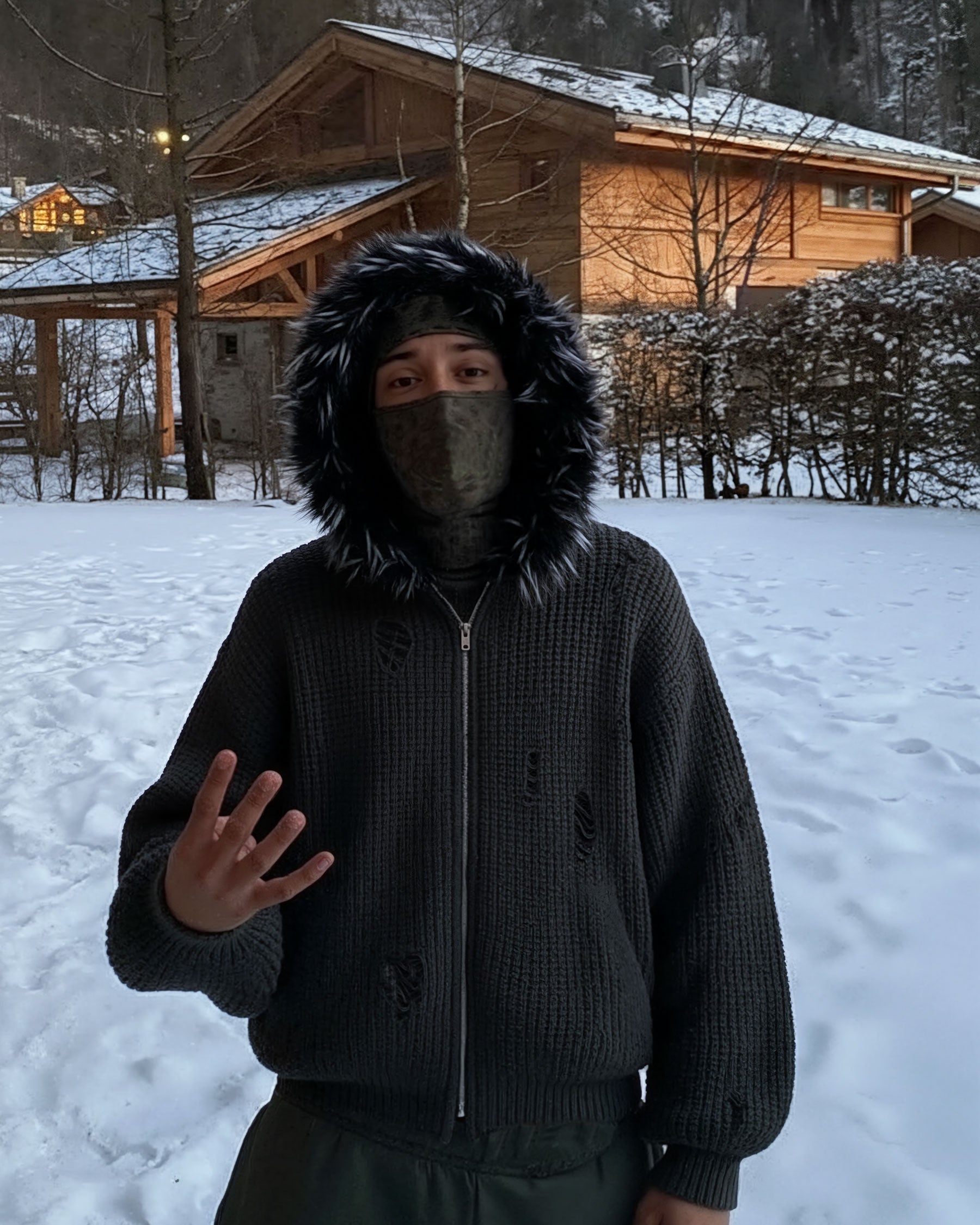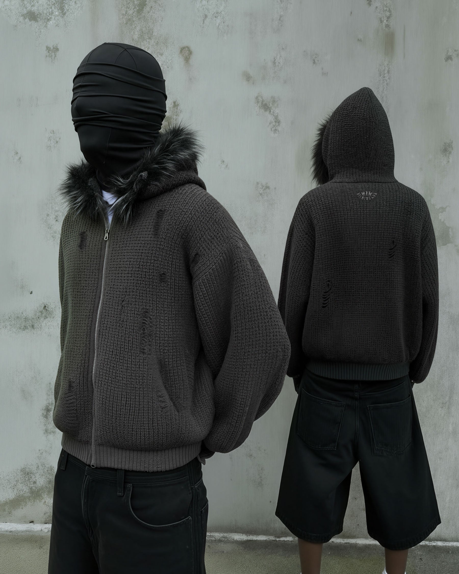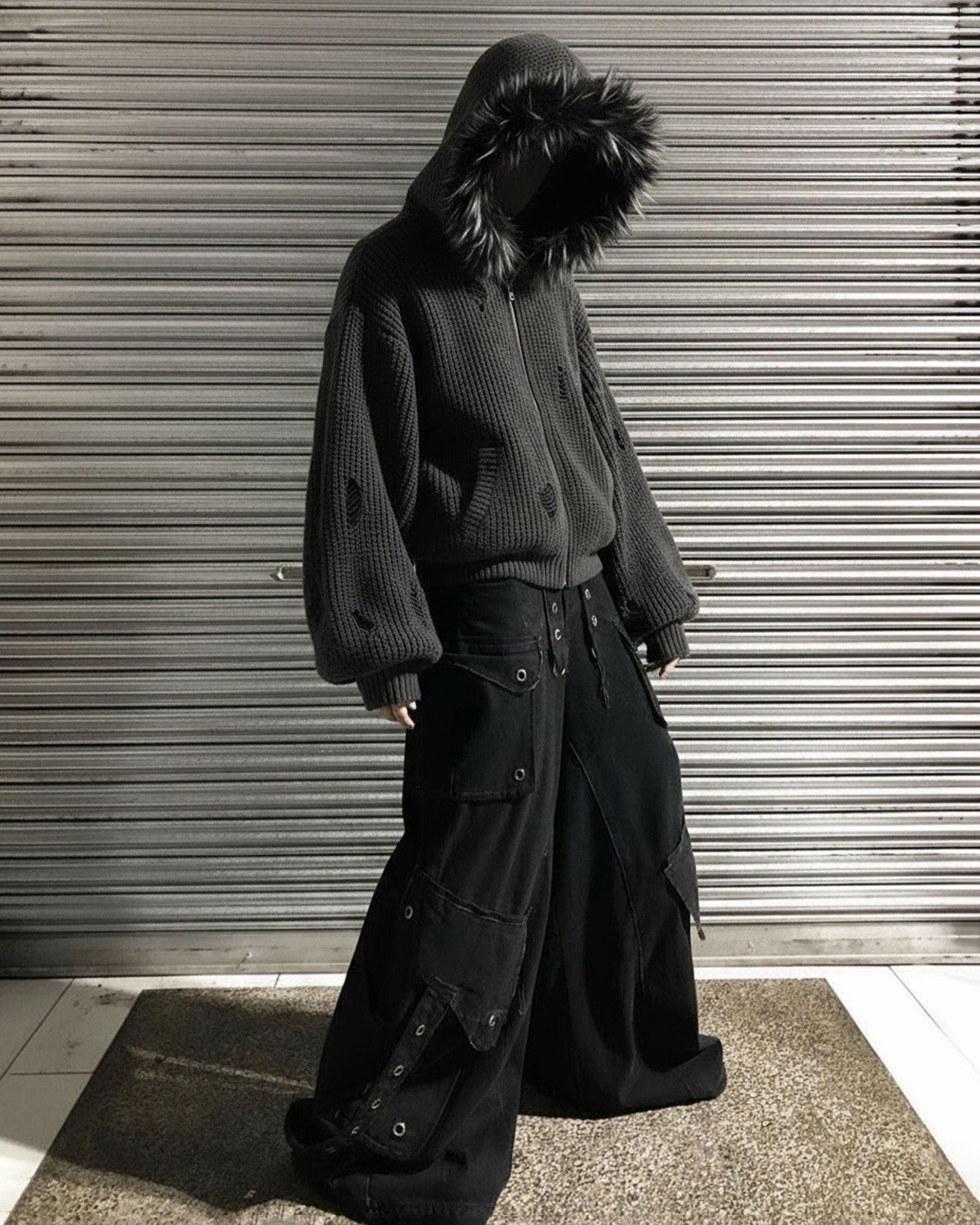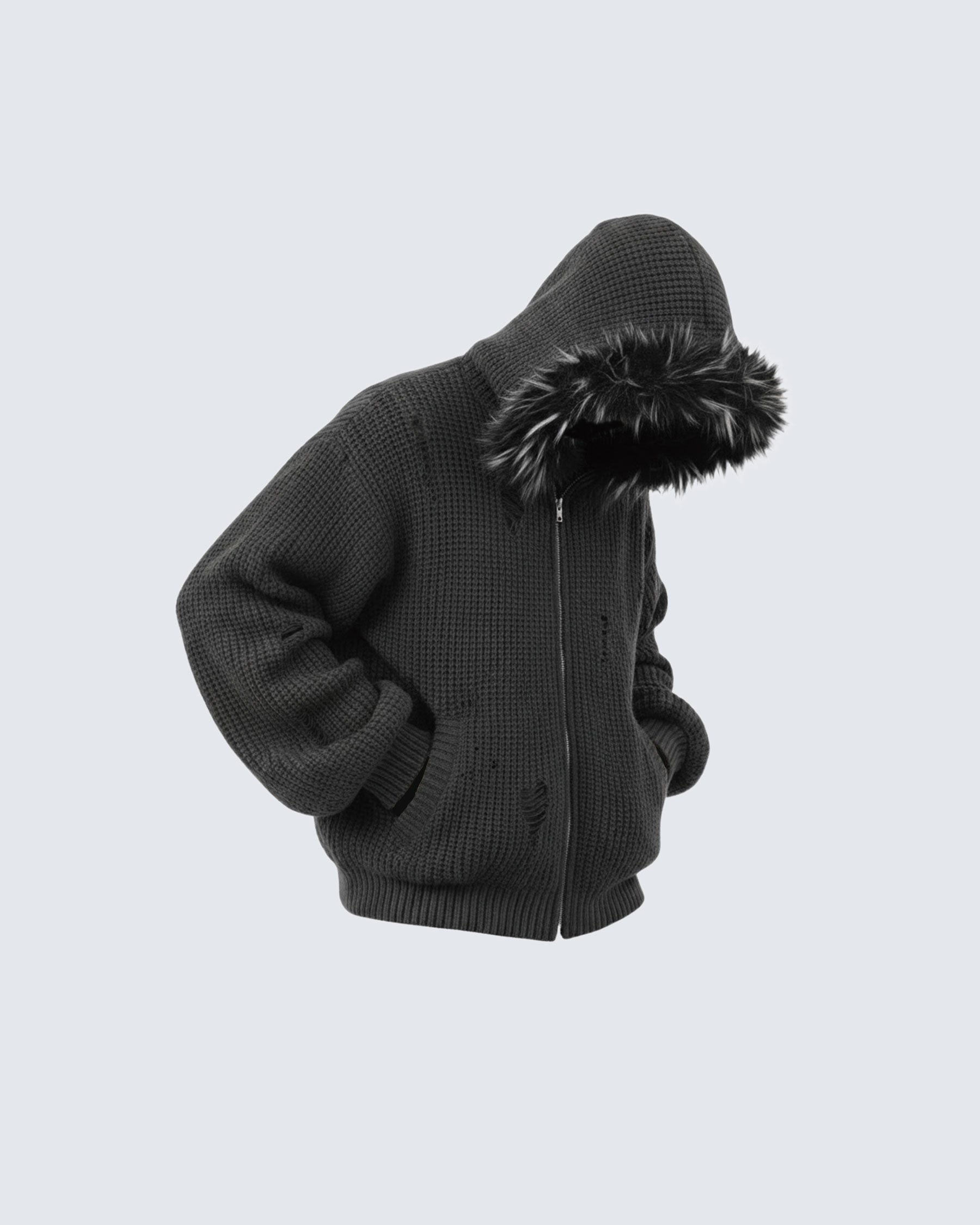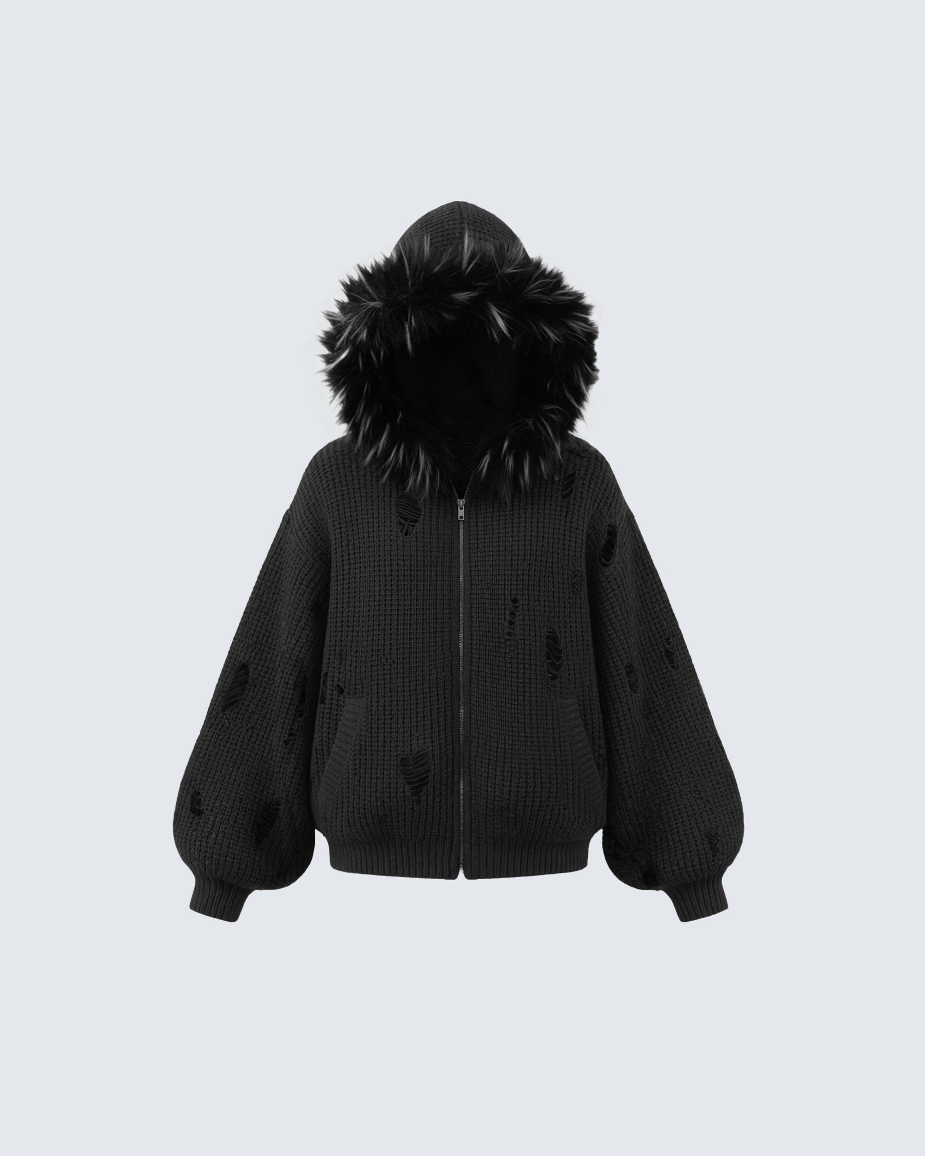 KIIKIO Destroyed Knitted Sweater Plush Coat