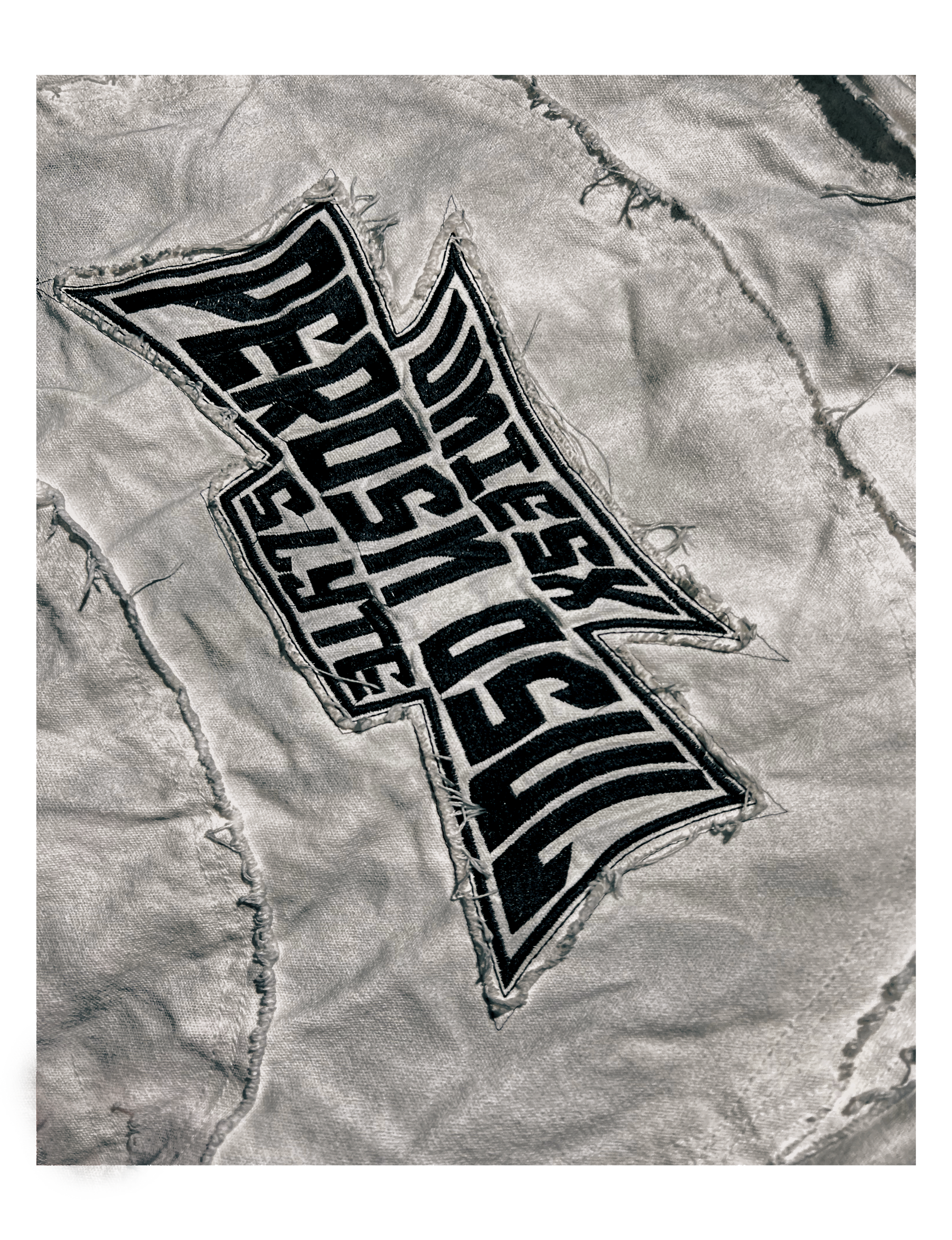 Vintage distressed accents paired with unique embroidery for standout style. -