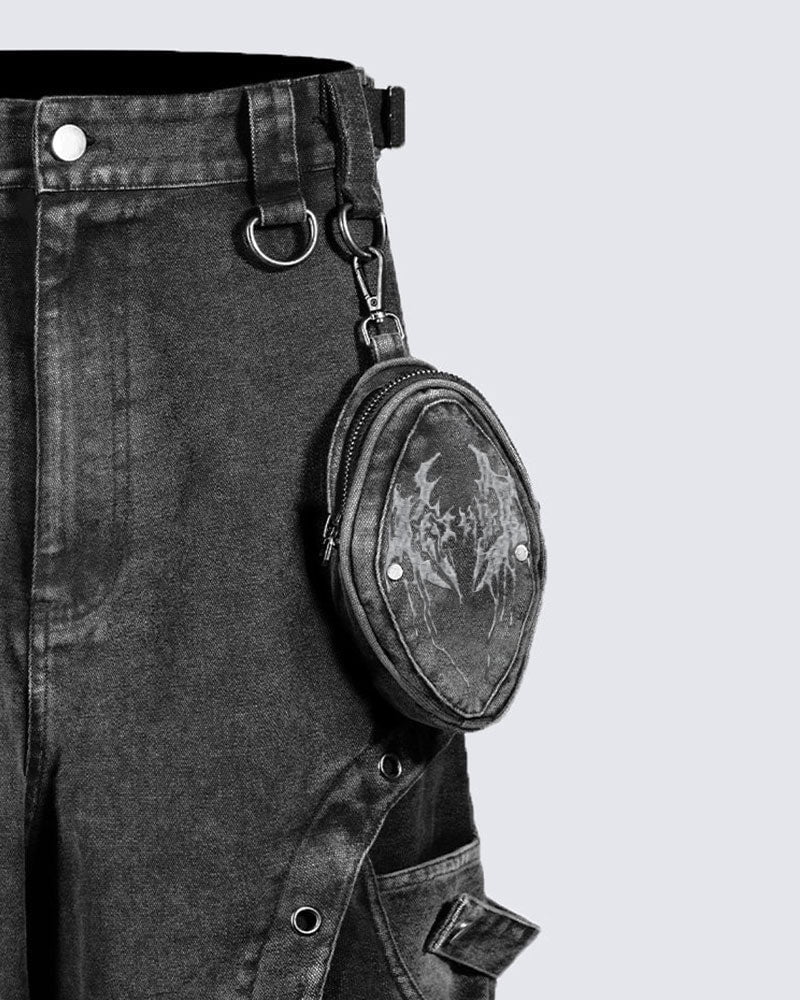 Fashion pant bag with multiple functions, made from wear-resistant material. It has undergone a fade wash process, giving it a vintage yet simple and stylish look. Embroidered with the KIIKIO logo.