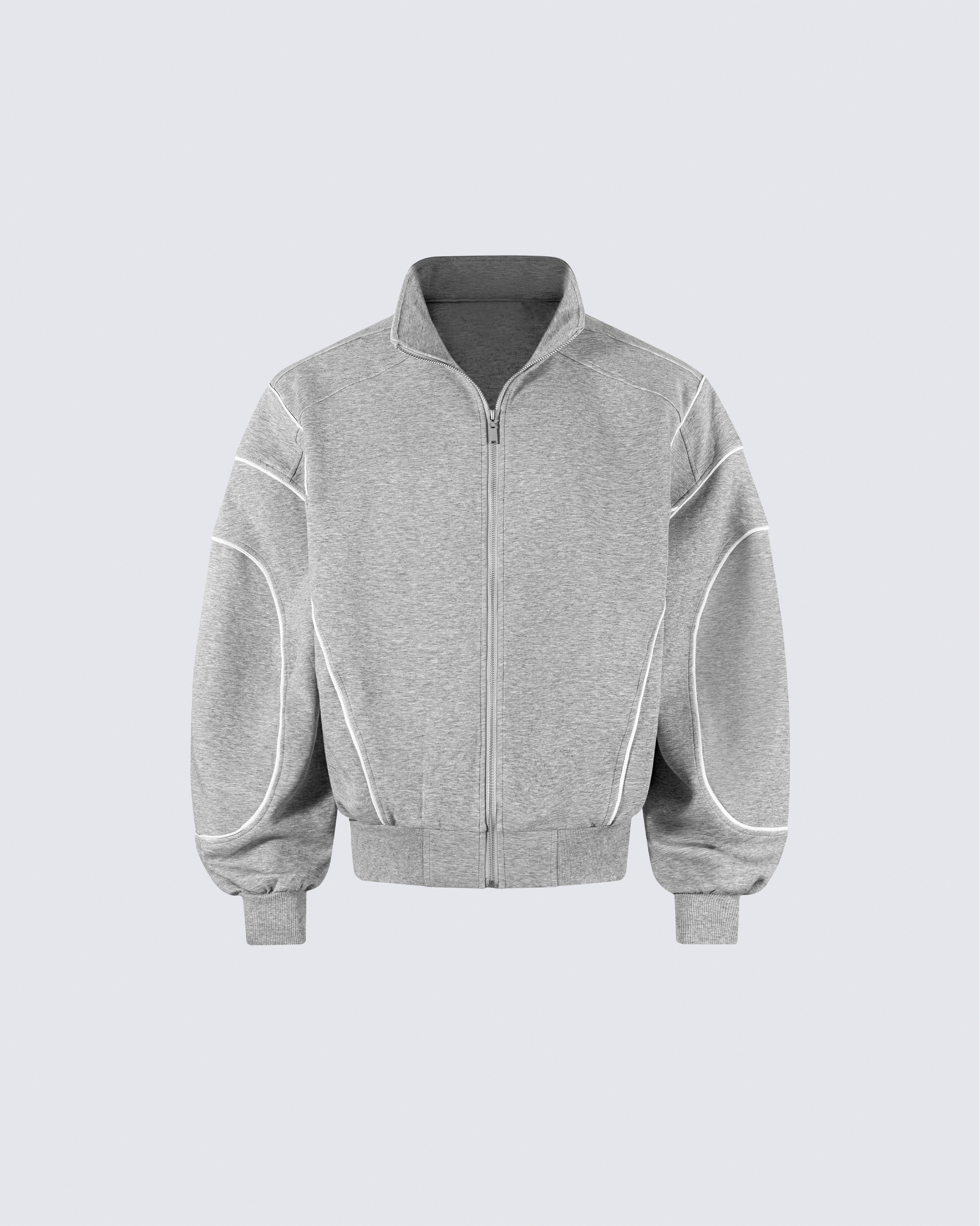 Loose-Fit Zip-Up Sweatshirt with White Piping