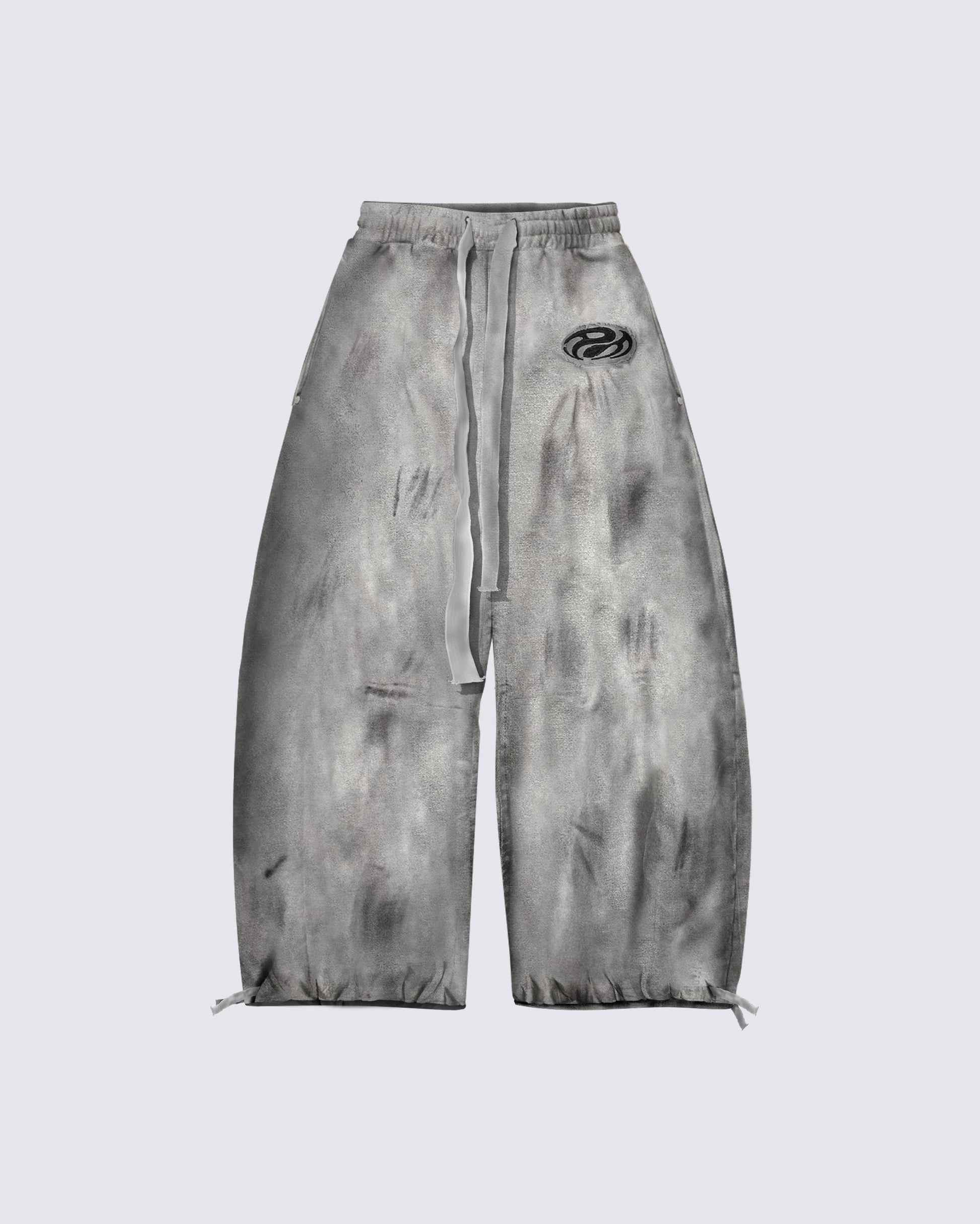 Distressed Dirty Curved-Cut Drawstring Sweatpants