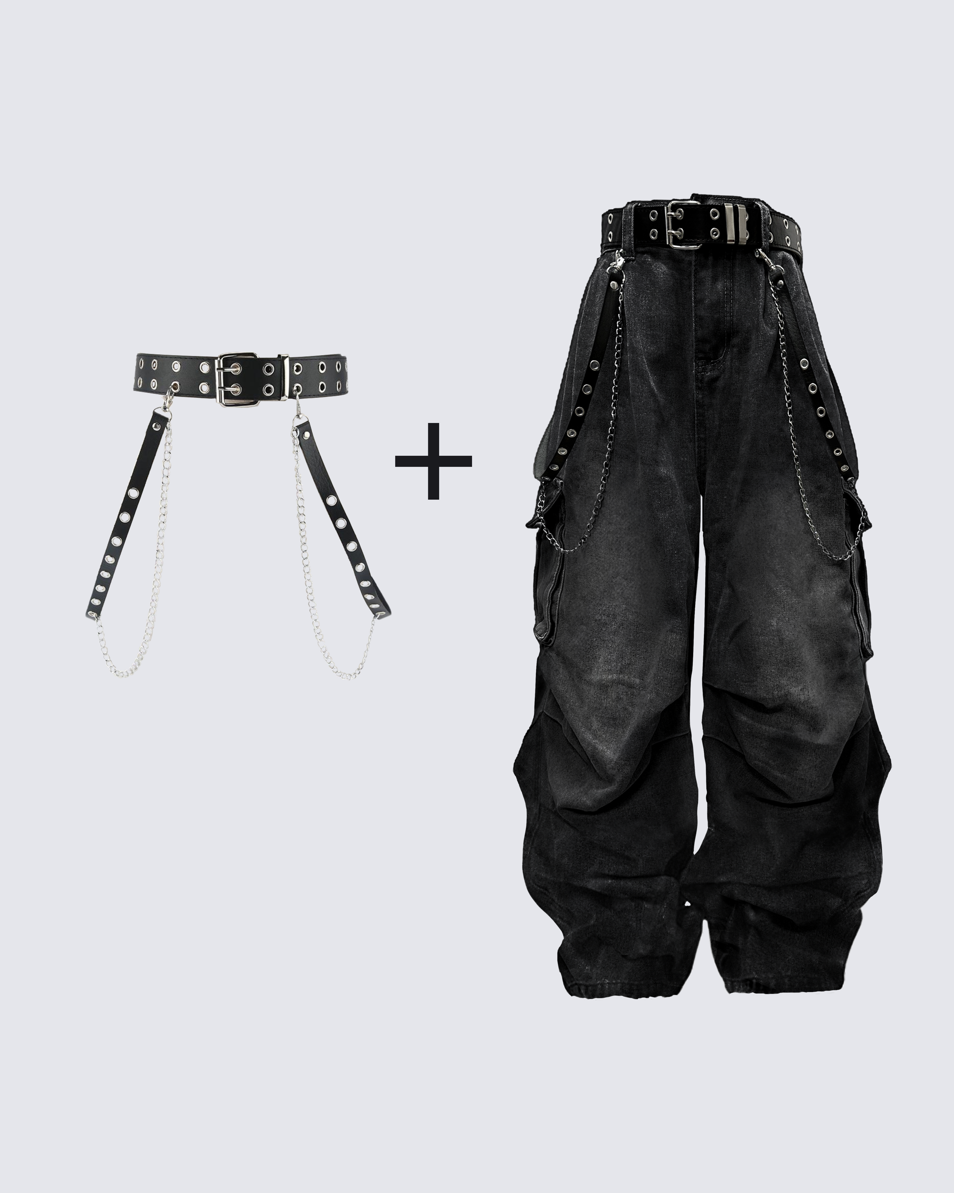 Washed Pocket Cargo Pants(Free Belt and Chain Included)
